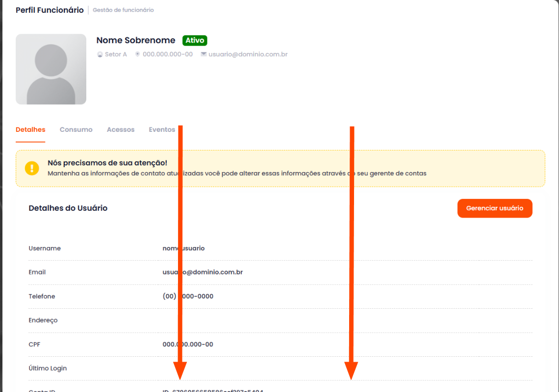 Serão exibidos dados do usuário, para estabelecer ou alterar um limite de gasto para o usuário: