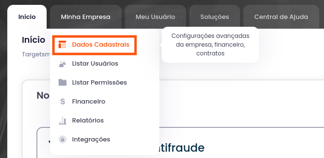 1- No menu principal, clique em "Minha empresa".