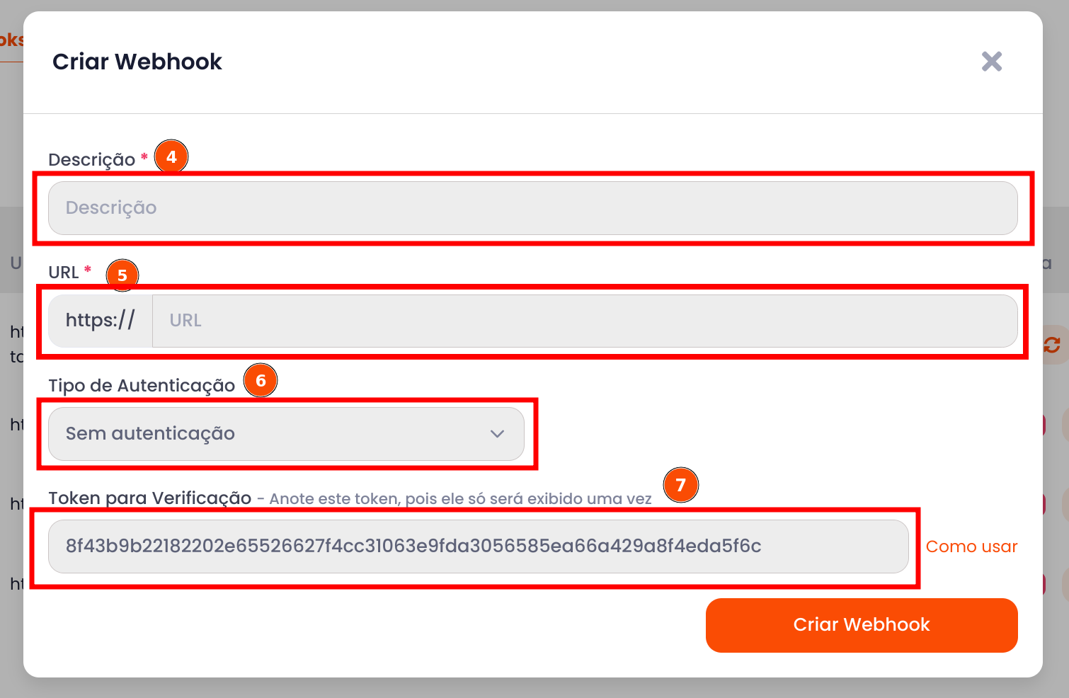 4- Clique em "Criar Webhook".