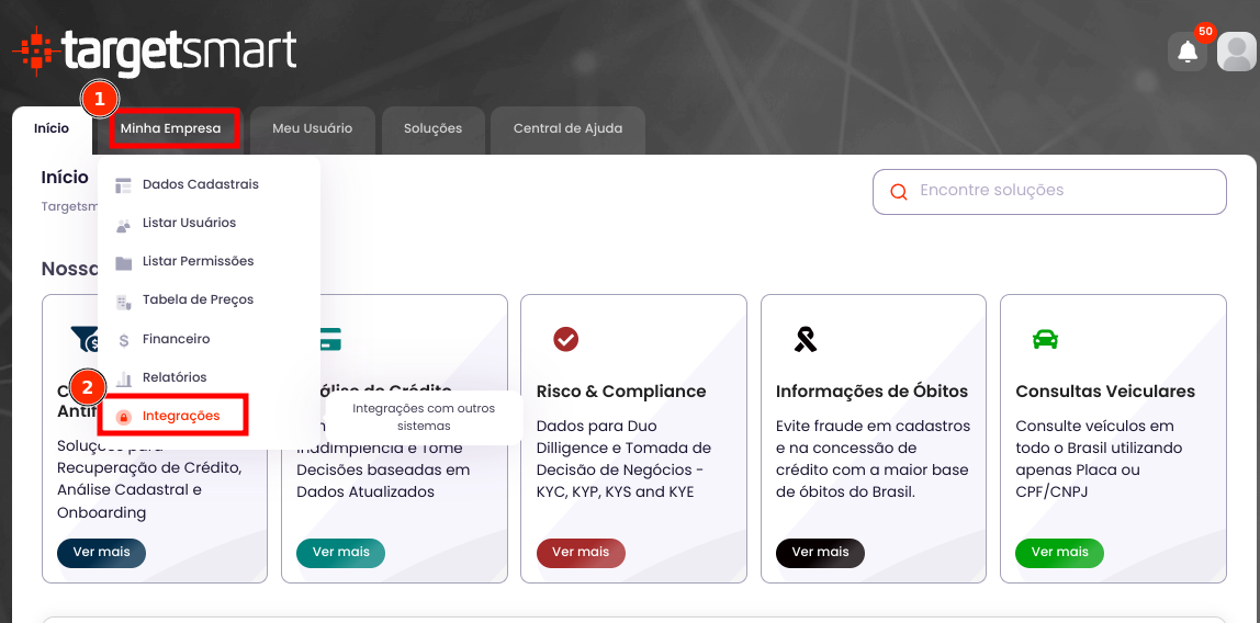 2- Clique em "Integrações".