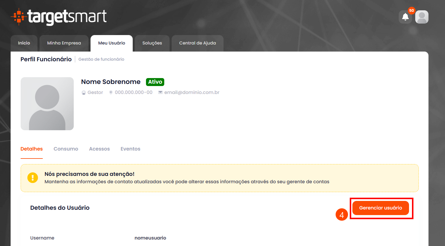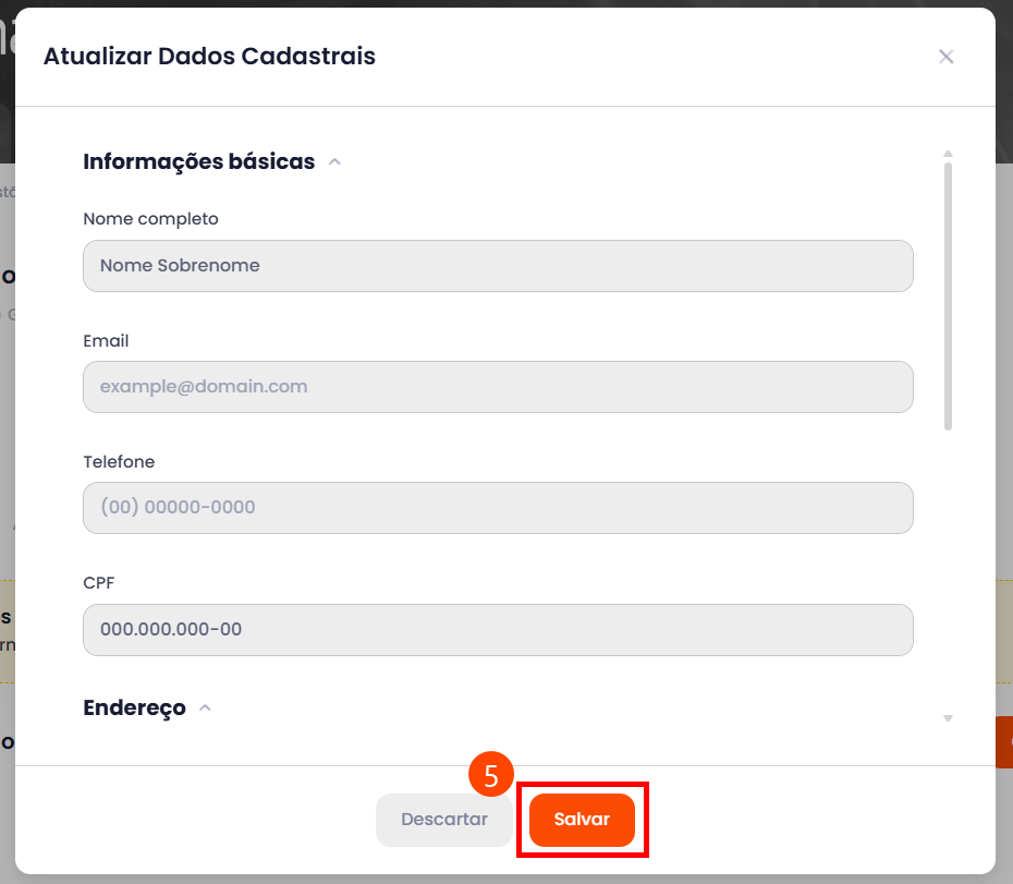 Será exibido os dados cadastrais do seu usuário. Preencha-os e clique em "Salvar"