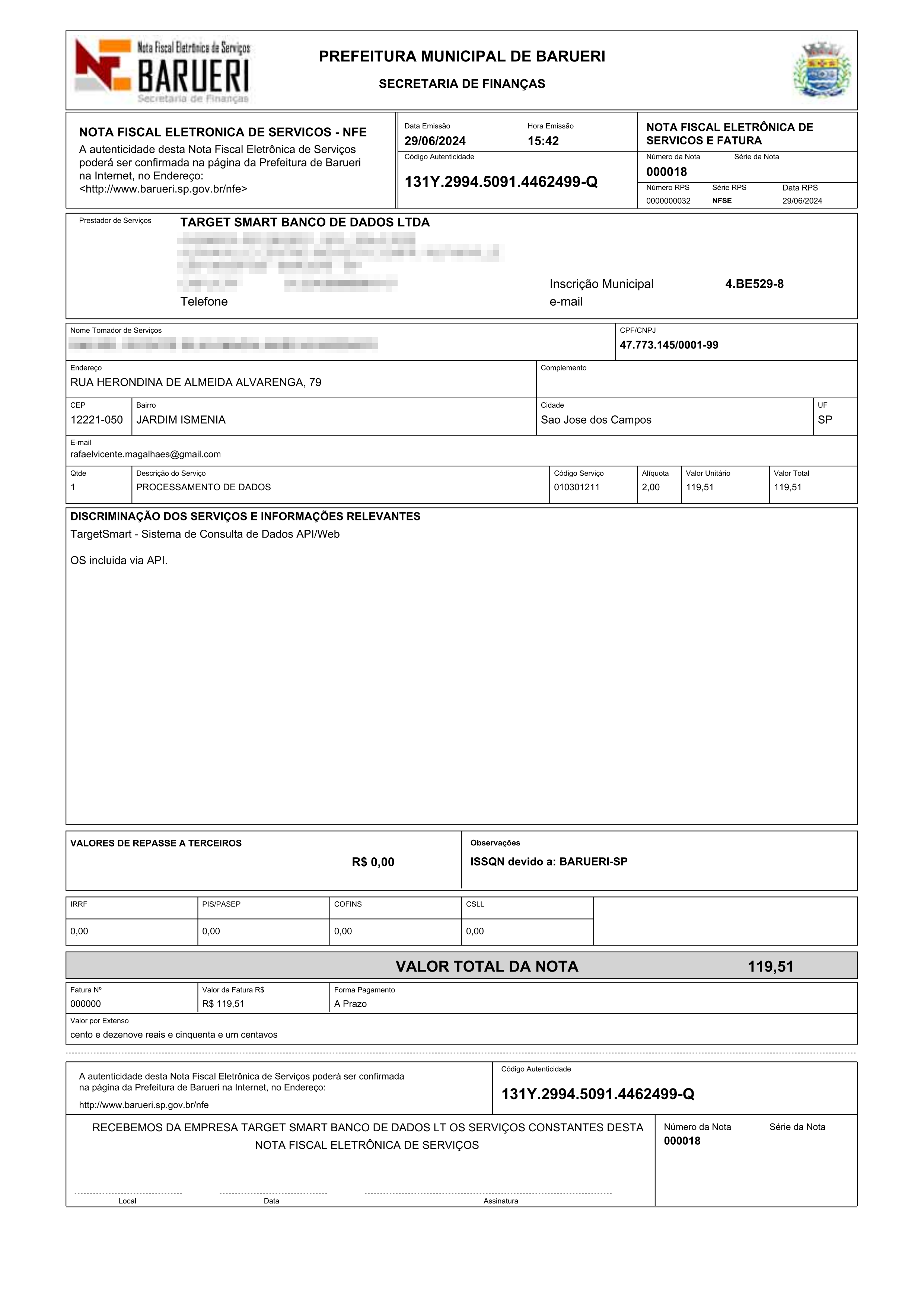 Pronto, a nota fiscal estará disponível para download.